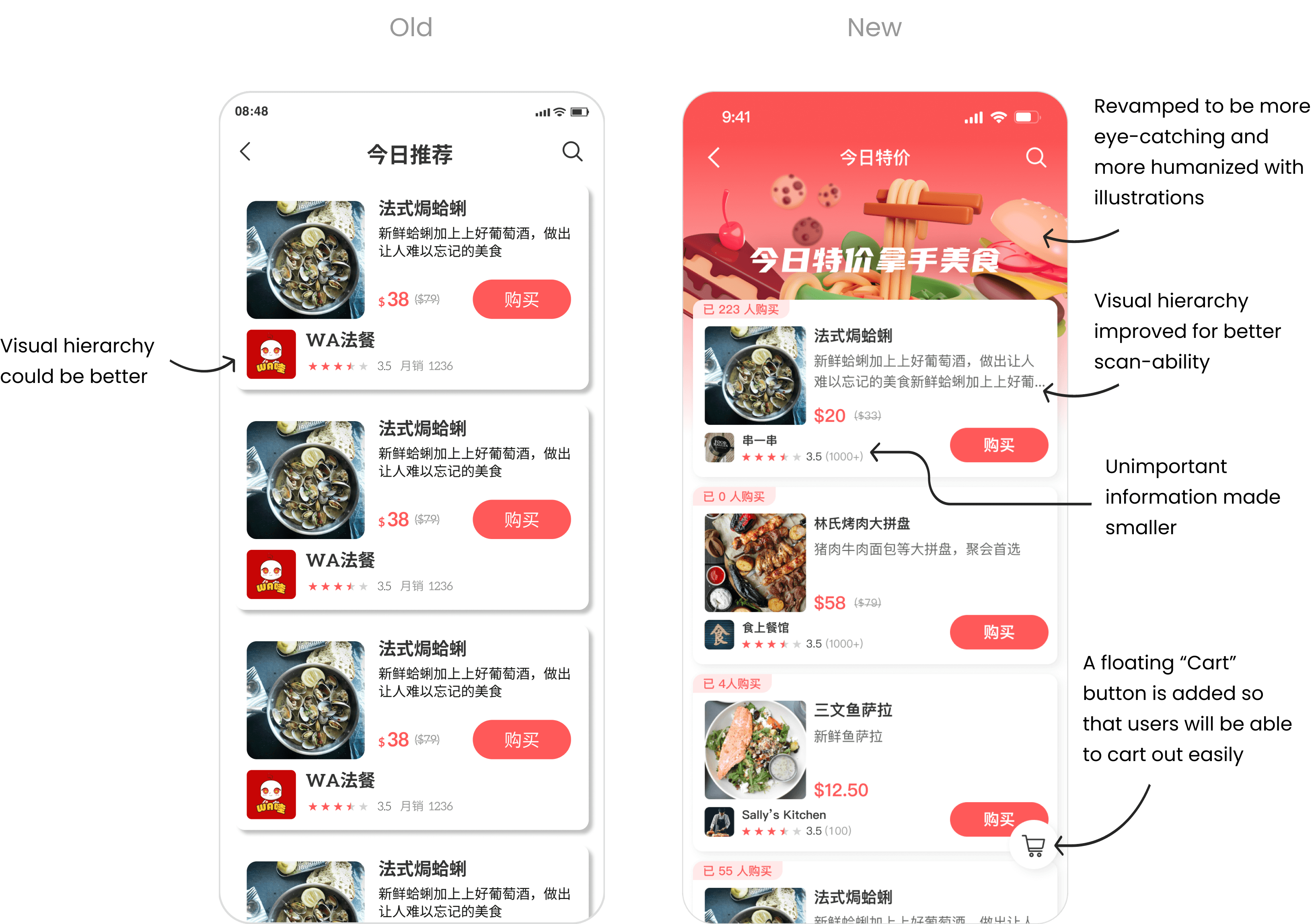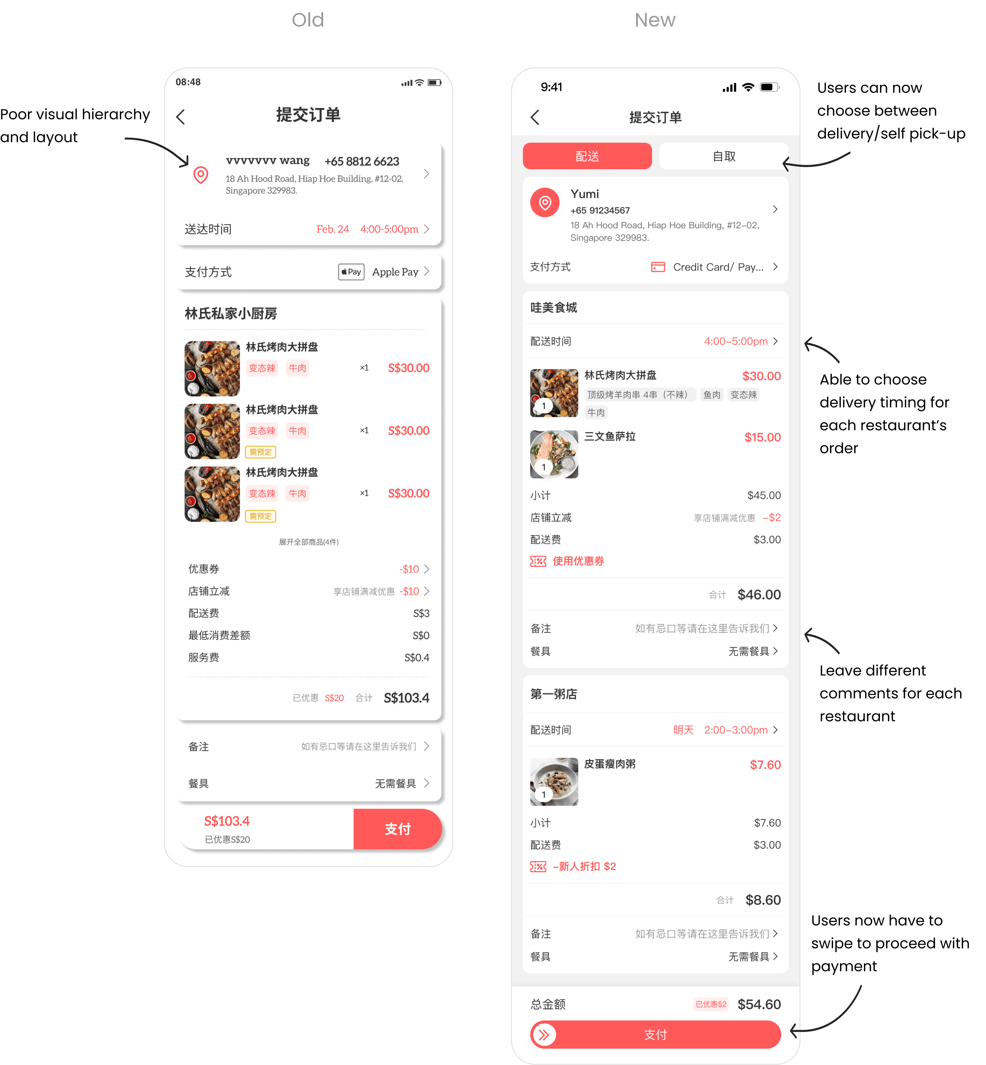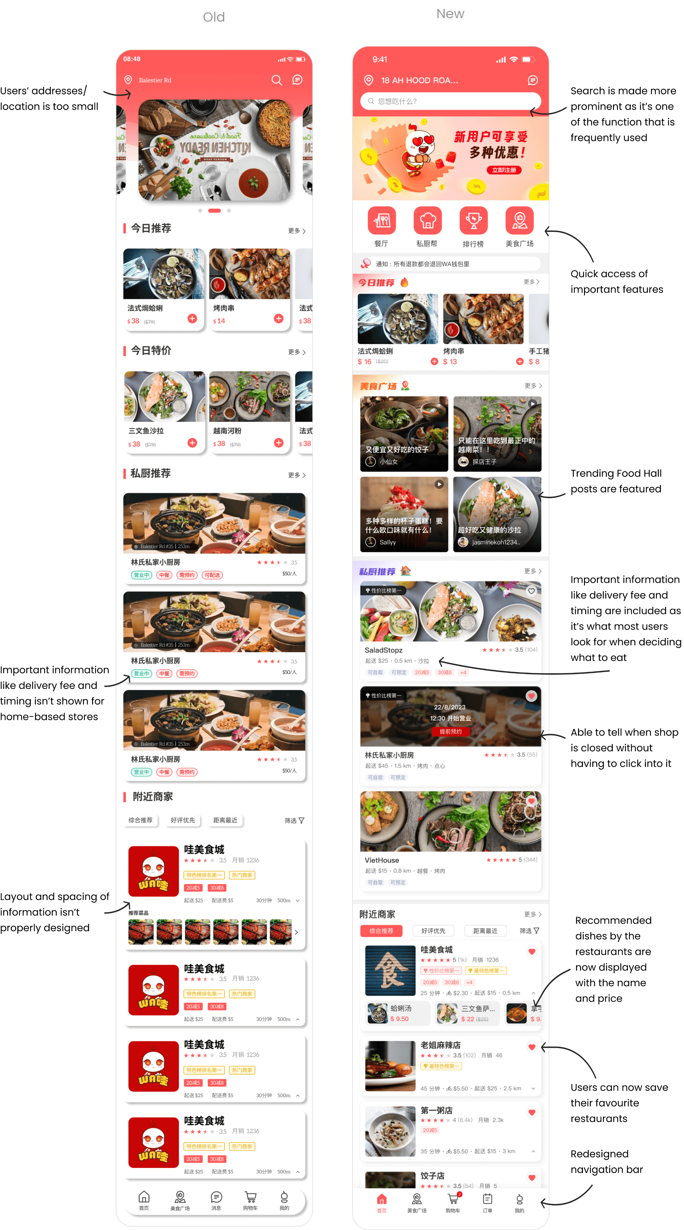 UI redesign case study for 哇! 外卖 (WA! Food Delivery)